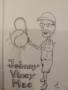 This caricature by Ian my son in law, surprised me as it linked the famous McEnroe to me . My tennis cannot be compared to him though at some time in my younger days I could compete for being very short tempered .