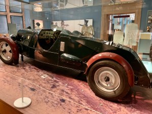 The paintings were most interesting. I saw many original paintings of the Glasgow team of artists . There were country side themes, a station scene and tennis players of old times . The model of an antique car interested me most . The designer was James Anderson. The car had unique features . It was believed to travel at 100 Mph . The speedometer was on the bonnet , headlights rotated in the direction of the steering . A full windscreen could be replaced by aeroplane style smaller screens at the turn of a handle when increasing speed.